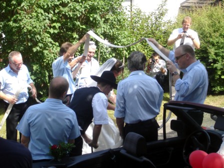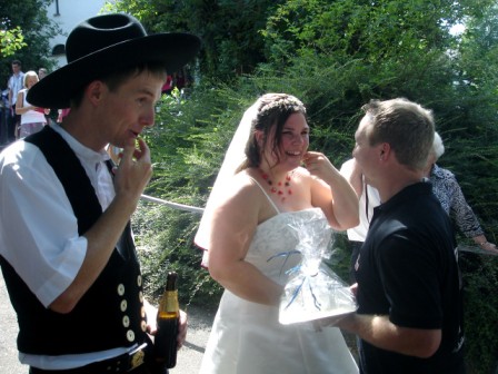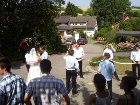 Spalier-Stehen an der Hochzeit von Mathias und Christina